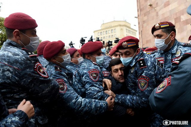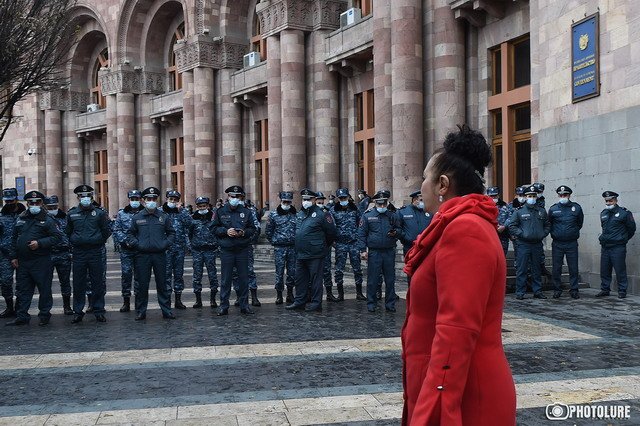 Подходы к зданию исполнительной власти были заблокированы большим количеством сотрудников полиции, гражданам не разрешали подойти ближе. Депутаты Альянса «Айастан» Анна Григорян и Гегам Манукян заявили, что как депутаты они имеют право войти в правительство и потребовать разъяснений от членов исполнительной власти, но полиция не позволила им подойти к входу.
