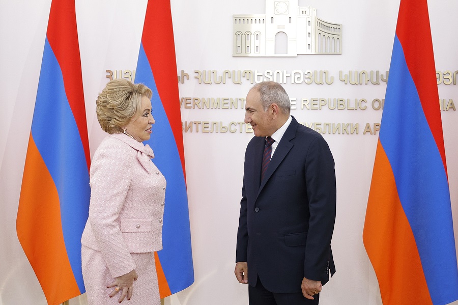 Премьер-министр Никол Пашинян принял находящуюся в Республике Армения с официальным визитом делегацию во главе с председателем Совета Федерации Федерального Собрания Российской Федерации Валентиной Матвиенко.