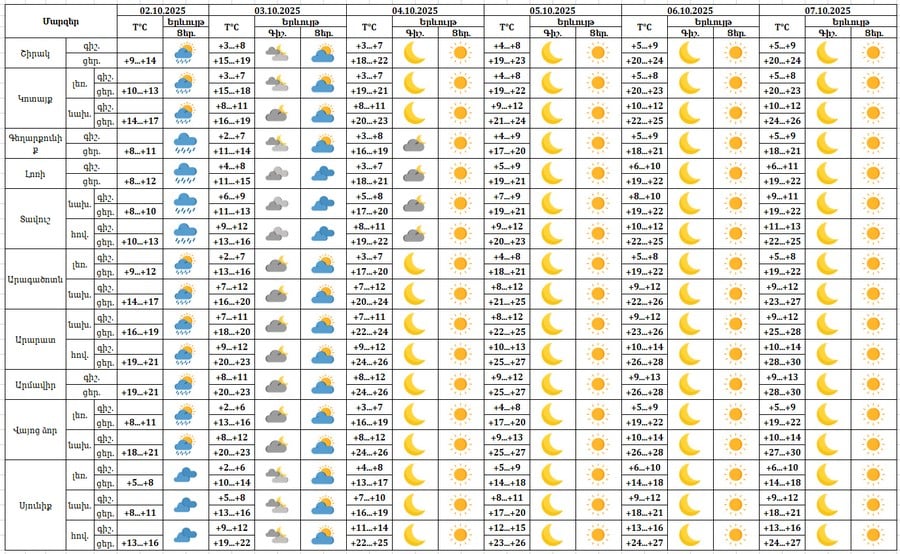 Днем 2 октября в отдельных районах ожидается дождь, возможен также туман. С 3 по 7 октября прогнозируется погода без осадков.