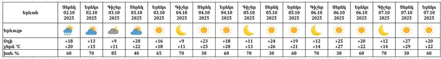 Климатические данные по городу Ереван на 2 октября (по многолетним наблюдениям):