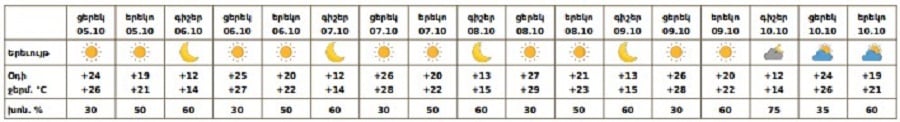 Днём 5 октября, а также с 6 по 10 октября ожидается без осадков.