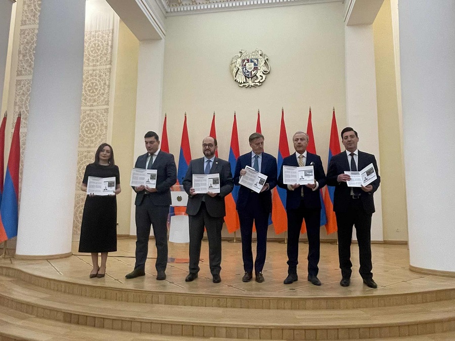 В церемонии приняли участие руководитель аппарата премьер-министра Араик Арутюнян, заместитель министра высокотехнологической промышленности Республики Армения Геворг Меликсетян, 16-ый лауреат Государственной премии Республики Армения за вклад мирового значения в сферу высоких технологий 2025 года, генеральный директор и председатель совета директоров компании «Analog Devices Inc.» (ADI) Винсент Рош, генеральный исполнительный директор ЗАО «Айпост» Шушан Алексанян, генеральный директор Viva Армен Аветисян и президент Армянской ассоциации филателистов, председатель исполкома премии Овик Мусаелян.