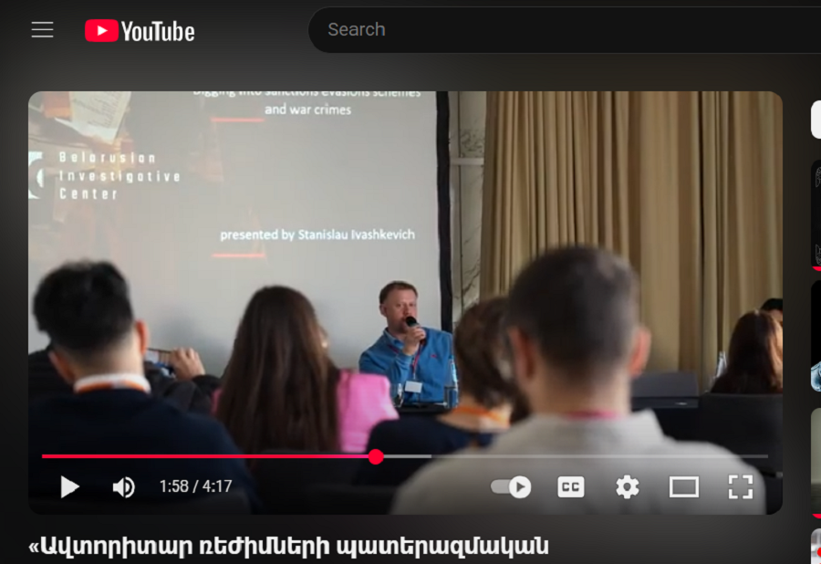 Спикерами выступили руководитель Белорусского расследовательского центра Станислав Ивашкевич, директор украинского портала Detector Media Галина Петренко и редактор армянского CivilNetCheck Ани Григорян. Они рассказали о том, как журналисты документируют военные преступления, нередко работая в условиях опасности и ограниченного доступа к территориям.
