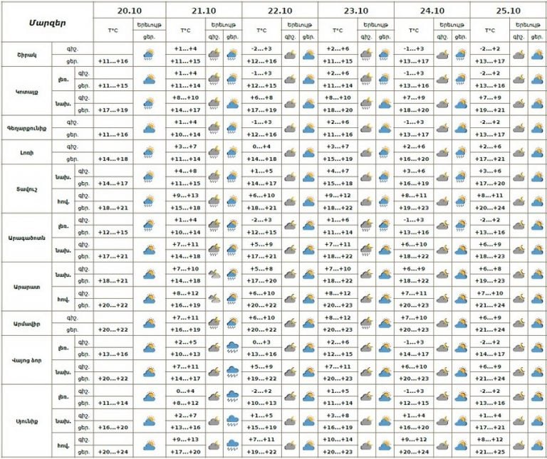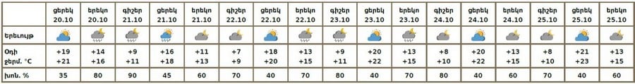 Многолетние климатические данные по городу Еревану на 21 октября: