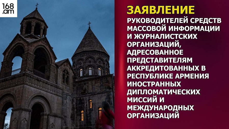 ЗАЯВЛЕНИЕ РУКОВОДИТЕЛЕЙ СРЕДСТВ МАССОВОЙ ИНФОРМАЦИИ И ЖУРНАЛИСТСКИХ ОРГАНИЗАЦИЙ, АДРЕСОВАННОЕ ПРЕДСТАВИТЕЛЯМ АККРЕДИТОВАННЫХ В РЕСПУБЛИКЕ АРМЕНИЯ ИНОСТРАННЫХ ДИПЛОМАТИЧЕСКИХ МИССИЙ И МЕЖДУНАРОДНЫХ ОРГАНИЗАЦИЙ