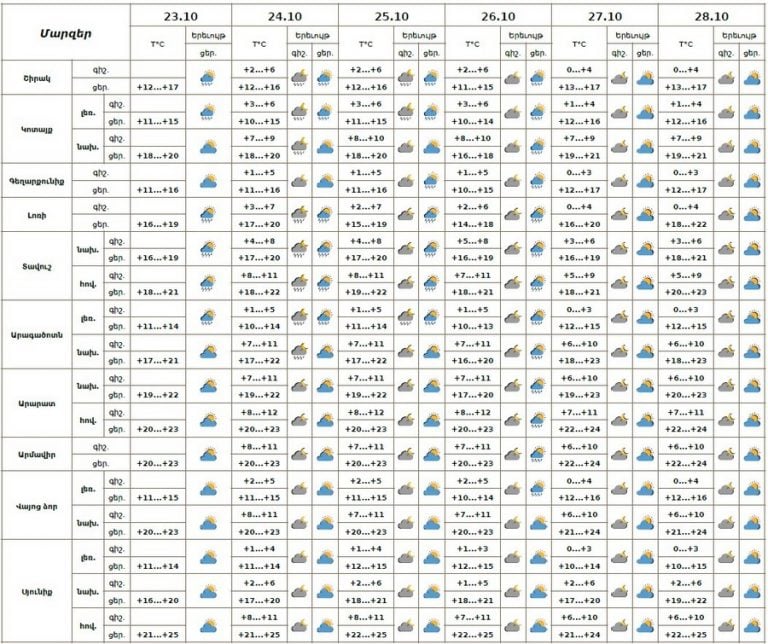 25, 27 и 28 октября прогнозируется погода без осадков.