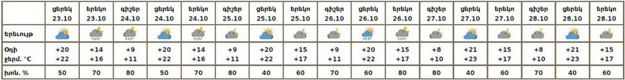 Многолетние климатические данные по городу Еревану на 24 октября: