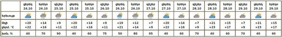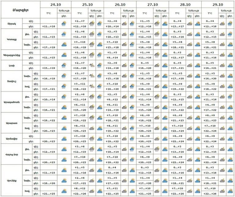 Многолетние климатические данные по городу Еревану на 25 октября: