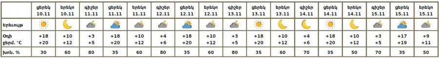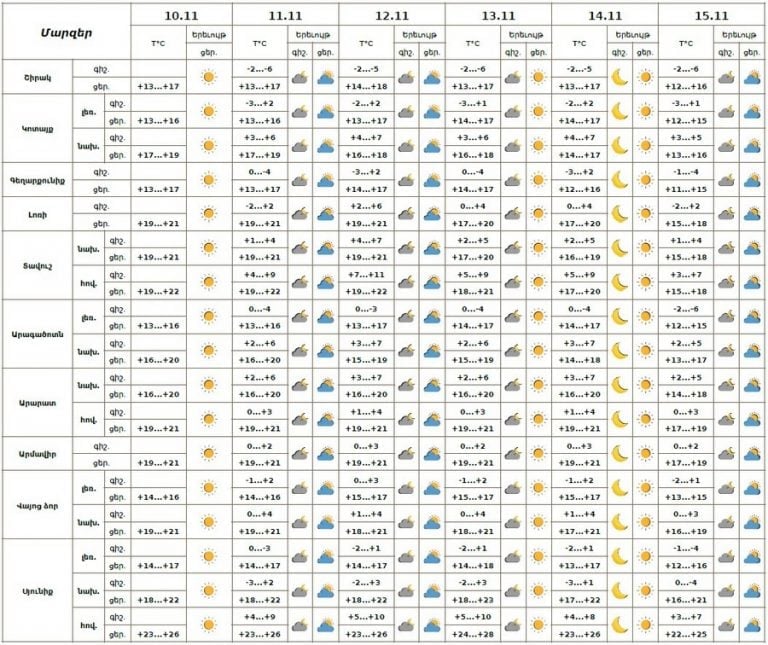 Во второй половине дня 10 ноября, а также 11–15 ноября ожидается погода без осадков.
