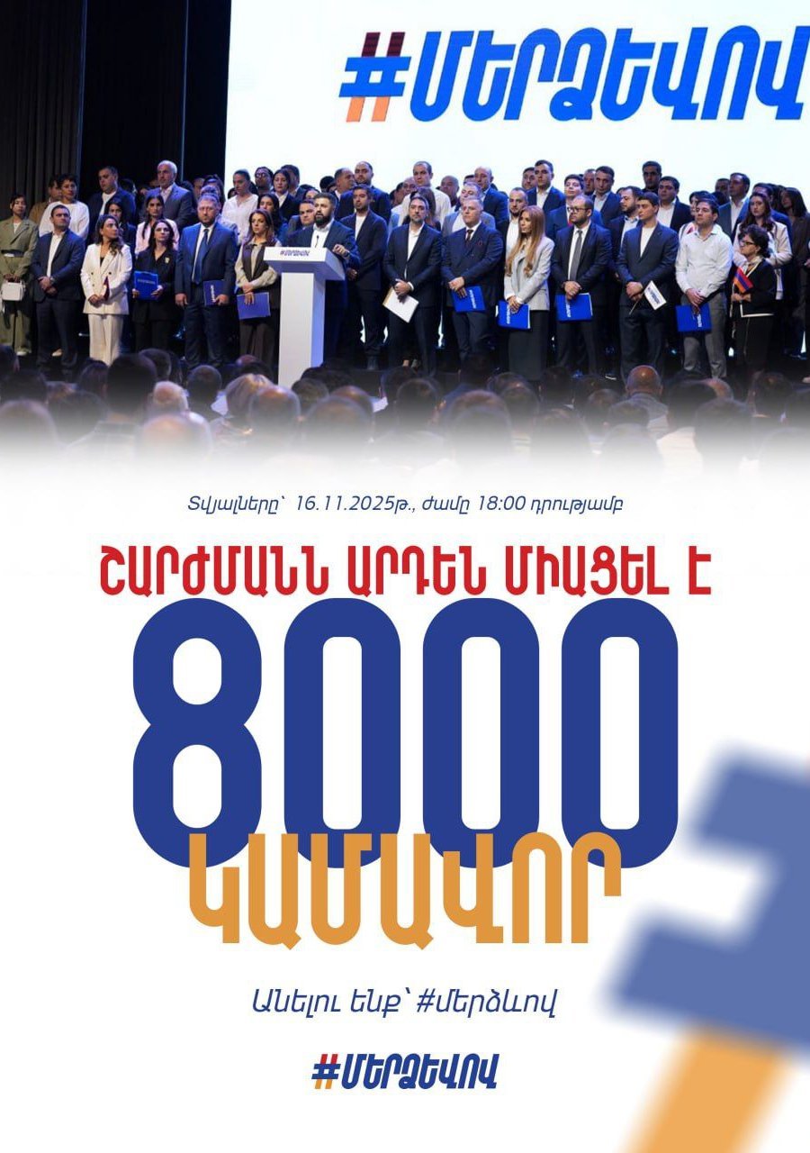 Всенародное движение «По-нашему» продолжает набирать обороты. К движению, возглавляемому национальным благотворителем Самвелом Карапетяном, который находится под незаконным арестом, уже присоединились 8 тысяч добровольцев. За последние дни число присоединившихся к нам увеличилось в несколько раз. Только за пять дней к движению присоединилось около тысячи граждан, и эта тенденция продолжается. Наши соотечественники связывают реальную возможность перемен в Армении именно с движением «По-нашему».