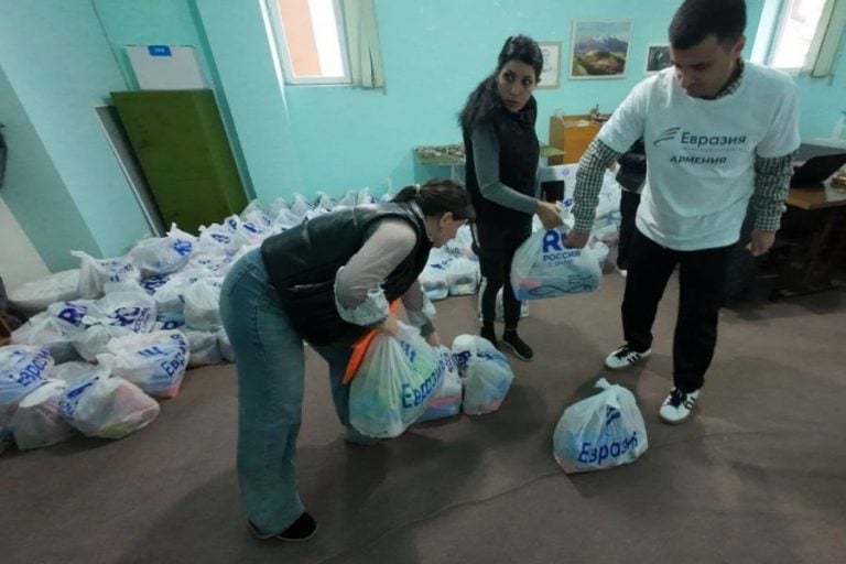 В Армавире стартовал новый этап гуманитарной инициативы, реализуемой «Евразия» ИՀԿ совместно с Русской Гуманитарной Миссией и Россотрудничеством в рамках проекта «Россия с вами». С самого утра здесь кипит работа: волонтёры встречают семьи, проверяют данные и помогают каждому получить набор продуктов и товаров первой необходимости.