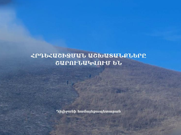 «Уважаемые жители, информируем вас, что в лесных территориях Дилижана продолжаются начатые с раннего утра работы по тушению пожара. Около 200 сотрудников Спасательной службы МВД РА, эко-полицейские, жители общины, а также техника спасательной службы и муниципалитета в данный момент задействованы в действиях по ликвидации огня.