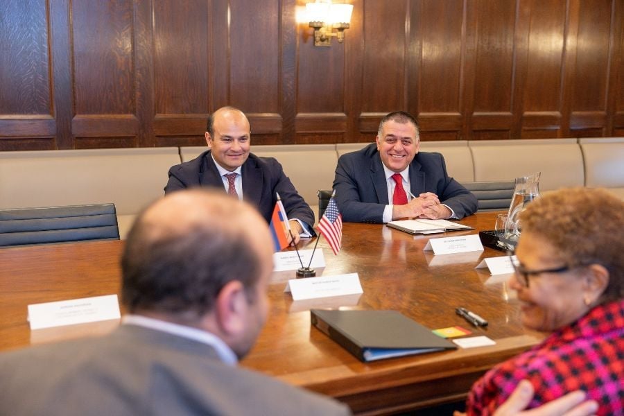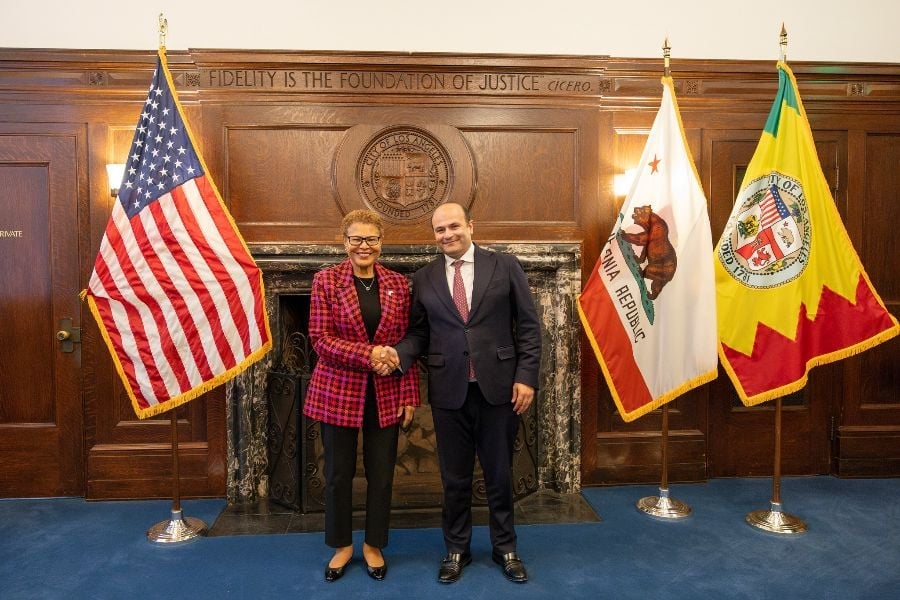 В рамках рабочего визита в Калифорнию посол Армении Нарек Мкртчян провёл встречу с мэром Лос-Анджелеса Карен Басс. Во встрече также участвовал генеральный консул Армении в Лос-Анджелесе Карен Исраелян.