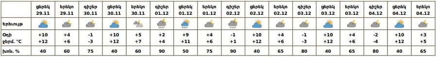 Днем 29 ноября, 30 ноября, днём 2 декабря, а также 3–4 декабря ожидается погода без осадков.