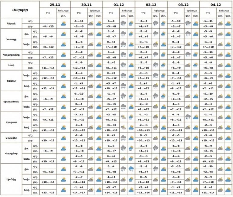 Температура воздуха 1–3 декабря постепенно понизится на 3–4 градуса, в Араратской равнине и предгорьях — существенно не изменится.