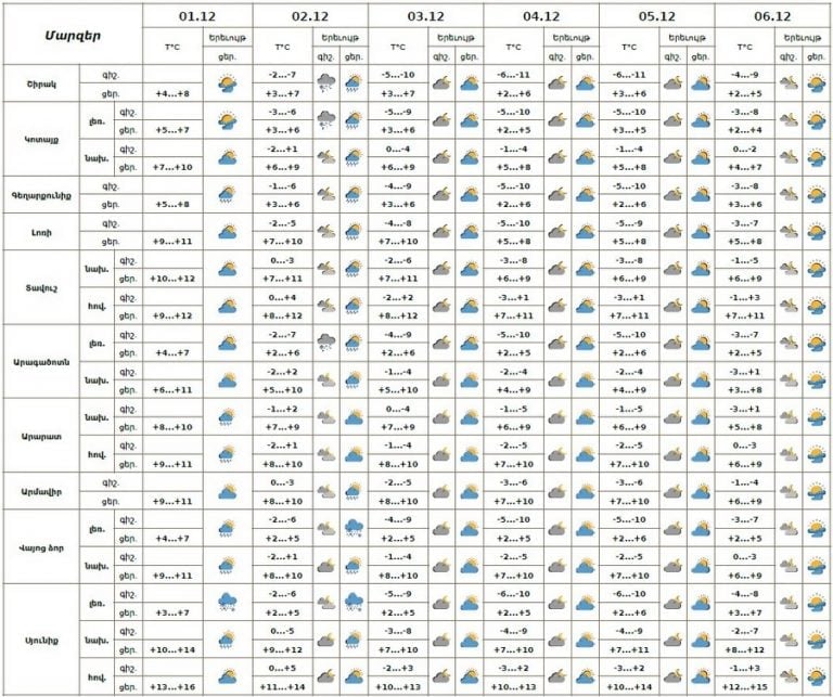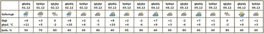 С 3 по 6 декабря ожидается погода без осадков.