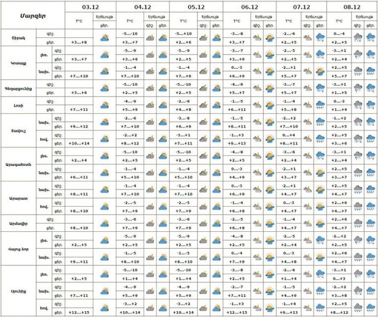 7 декабря днём в отдельных районах, а 8 декабря — в большинстве районов ожидаются осадки: в горных зонах — снег и мокрый снег, в долинных районах — дождь.