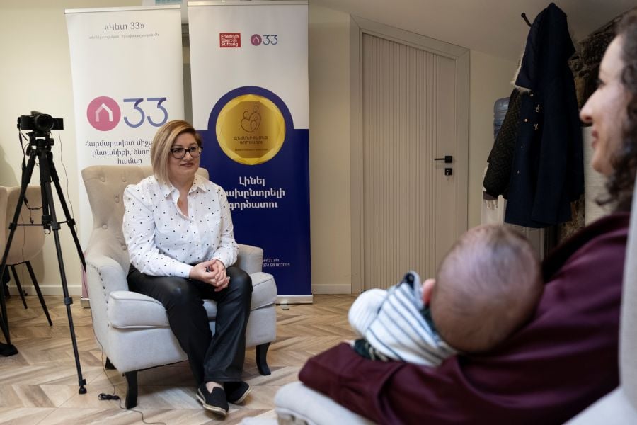В беседе с нами Астхик Карапетян рассказала, как, используя европейский опыт, она и ее организация «Точка 33» продвигают создание в Армении трудовой политики, ориентированной на поддержку семьи.