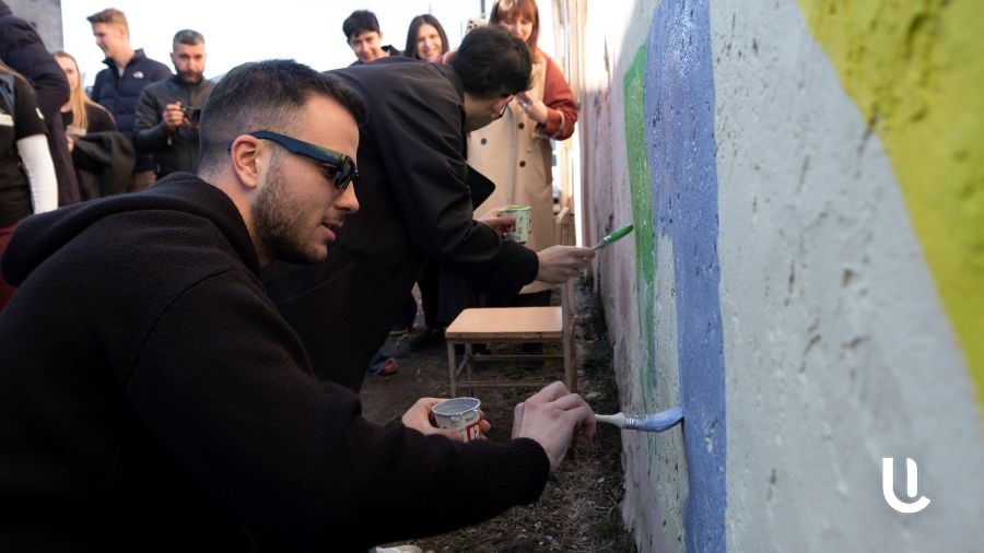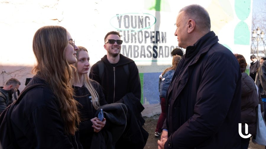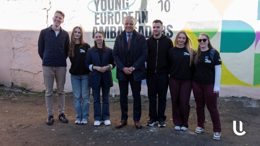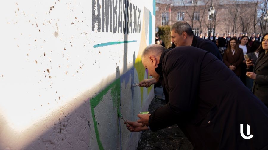 Там к ним присоединился посол ЕС в Армении Василис Марагос. Он встретился с местной молодежью в Апаране и принял участие в церемонии открытия мурала, посвященного 10-летию инициативы «Послы европейской молодежи».